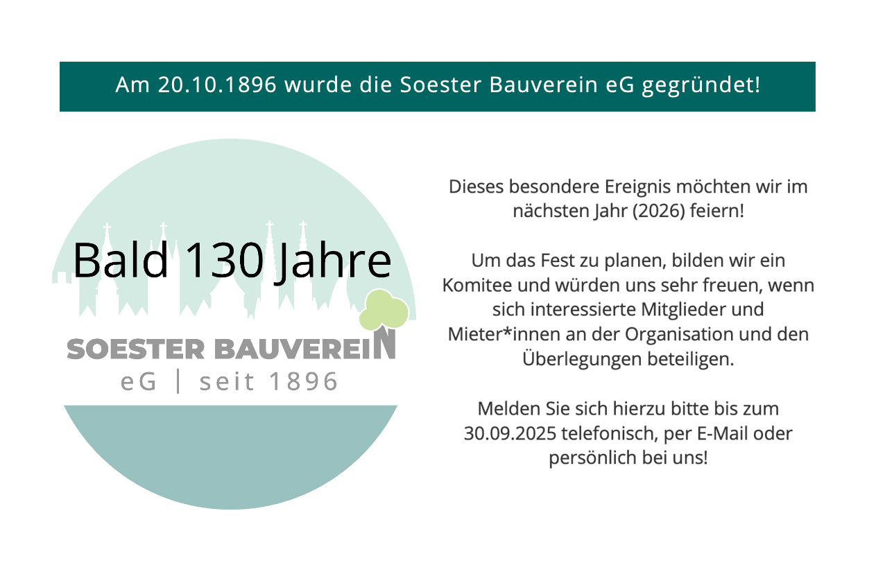 Herzlich Willkommen! Die Soester Bauverein eG zählt zu den ältesten Wohnungsbaugenossenschaften in Nordrhein-Westfalen.
