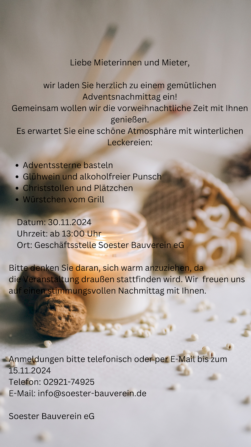 24.10.2024Einladung zum Adventsnachmittag für Mieterinnen u. Mieter